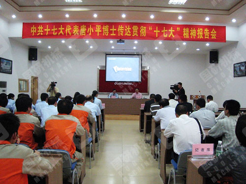 11月14日下午,阳光灿烂,秋风送爽,在喜庆的锣鼓和欢声笑语中,座落于广州市天河区珠吉街的广州市国研机械设备制造有限公司迎来了党的十七大代表唐小平博士。唐小平代表面对国研公司党支部全体党员和公司全体员工,作了一场丰富详实、精彩生动的报告。珠吉街党工委、办事处领导班子成员、街属各支部书记、以及天河区委组织部、区委宣传部的有关负责同志应邀出席了报告会。