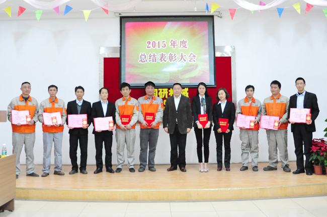 2016年2月24日晚,广州市国研机械设备制造有限公司全体同仁,在公司会议室召开了2015年度表彰大会。会上对公司年度销售冠军、工厂创新能手及优秀员工、先进集体和班组进行了表彰。